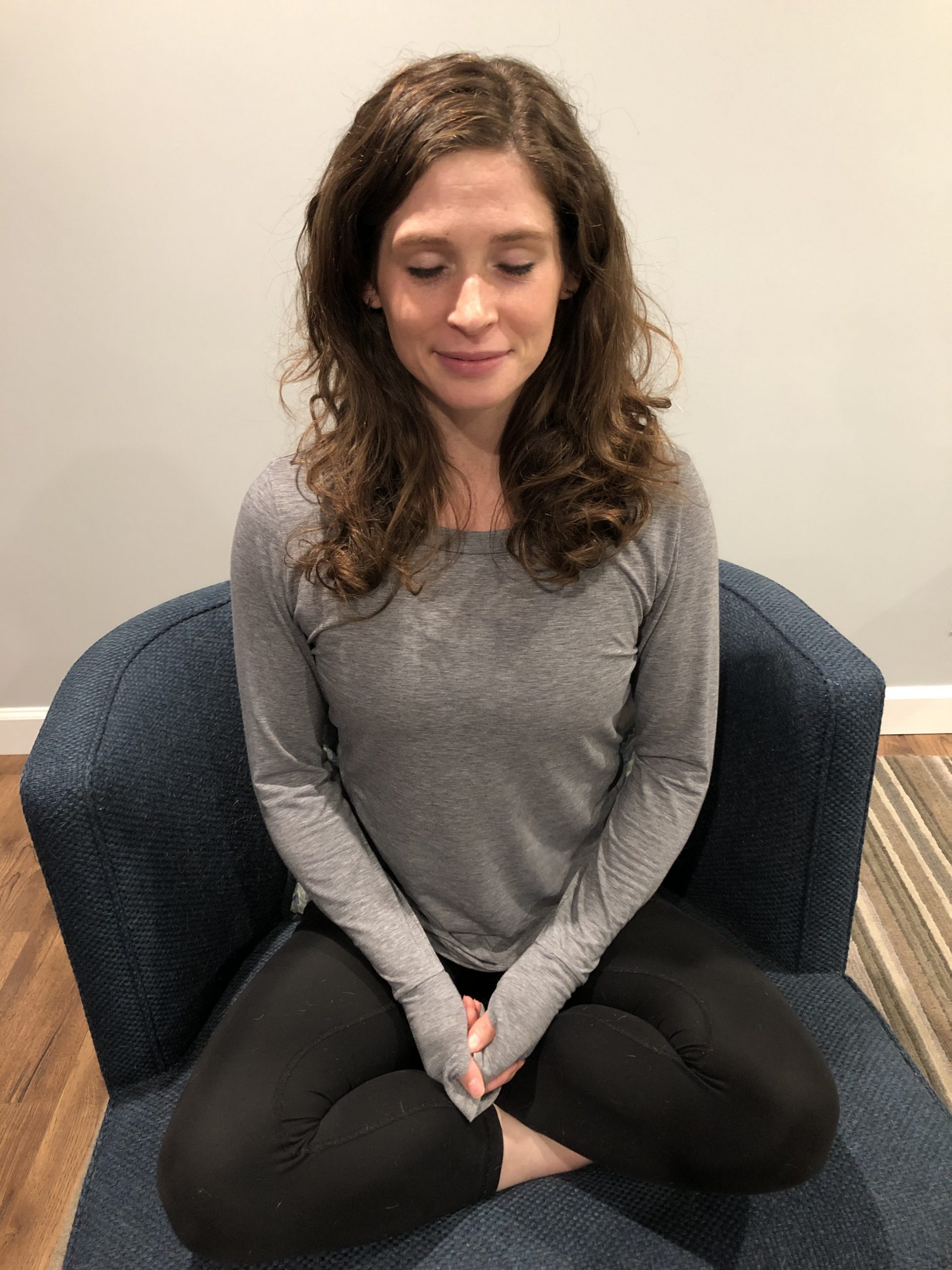 I need to sit on the floor with my legs crossed sitting up tall.Sit like that for 30 minutes? Nope! Not for me. I was thrilled when I learned you could sit in a chair and be comfortable. You can see I have my legs crossed in the picture, but that’s just becasue I find it more comfortable. While it is optimal to do sitting, I have also meditated lying down and have still found it to be beneficial for me.